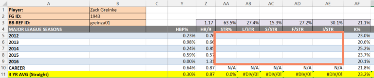 In the construct of the Projecting X template, they’re not needed that much because the data comes into the Excel file, you don’t need to visit Fangraphs’ site to get the information.